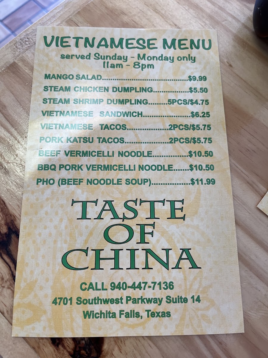 Welcome to Taste of China Wichita Falls, a culinary gem located at 4701 Southwest Pkwy, suite 14. This vibrant eatery offers an impressive fusion of Chinese and Vietnamese cuisines, making it a must-visit for food enthusiasts. With rave reviews highlighting the incredible food and top-notch service, it’s clear why locals keep coming back.