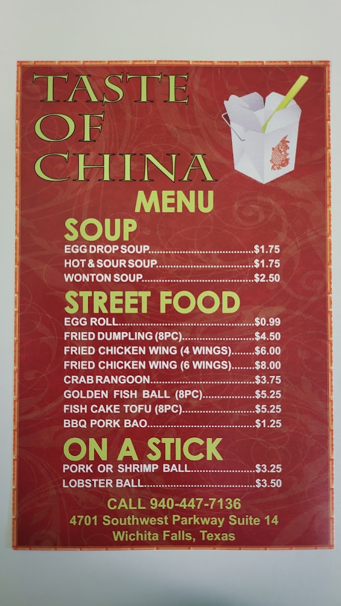 Whether you're after comforting orange chicken or unique local specials, Taste of China Wichita Falls promises an unforgettable dining experience!